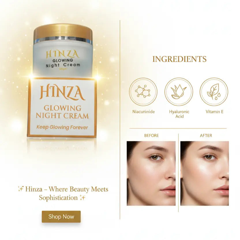 Discover premium skincare & beauty 🌸 with products crafted for a healthy glow 🌿, lasting confidence 💖, and true elegance 🌟. From our Hinza Glow Cream to upcoming makeup essentials 💄, we bring you authenticity, quality, and trust — delivered to your doorstep 📦.